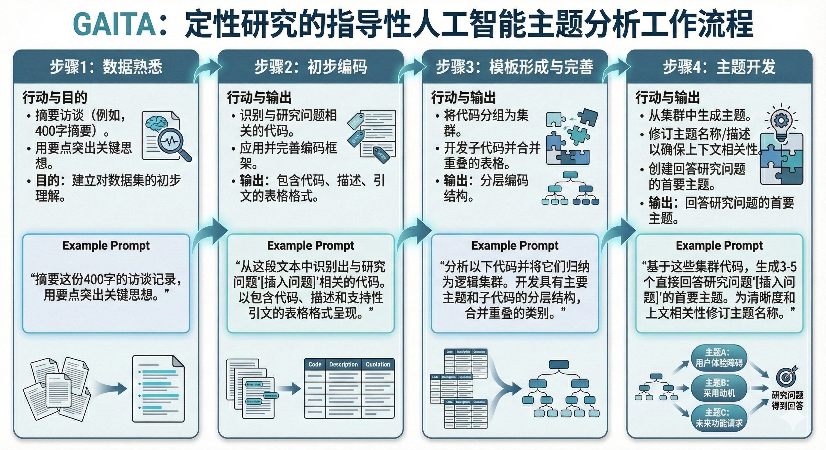在做质性研究时,逐字稿编码是不是让你头疼?GAITA(Guided AI Thematic Analysis)框架,结合 AI 工具,帮你节省时间,同时保持研究的严谨性。